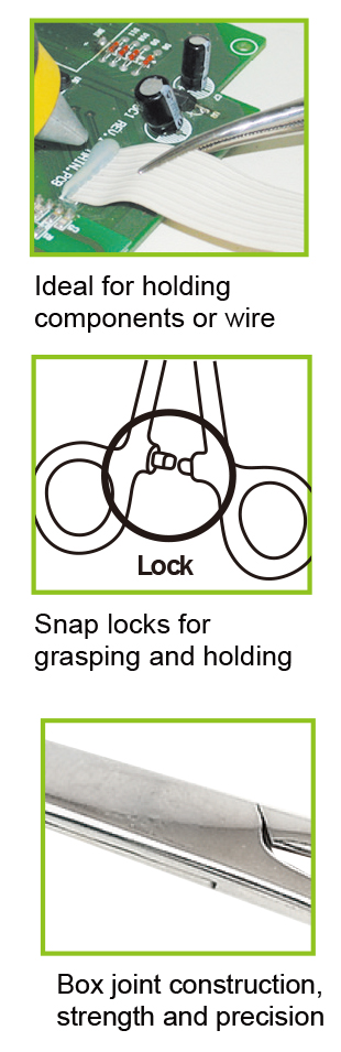 - Serrated gripping and snap locks for grasping and holding objects firmly.