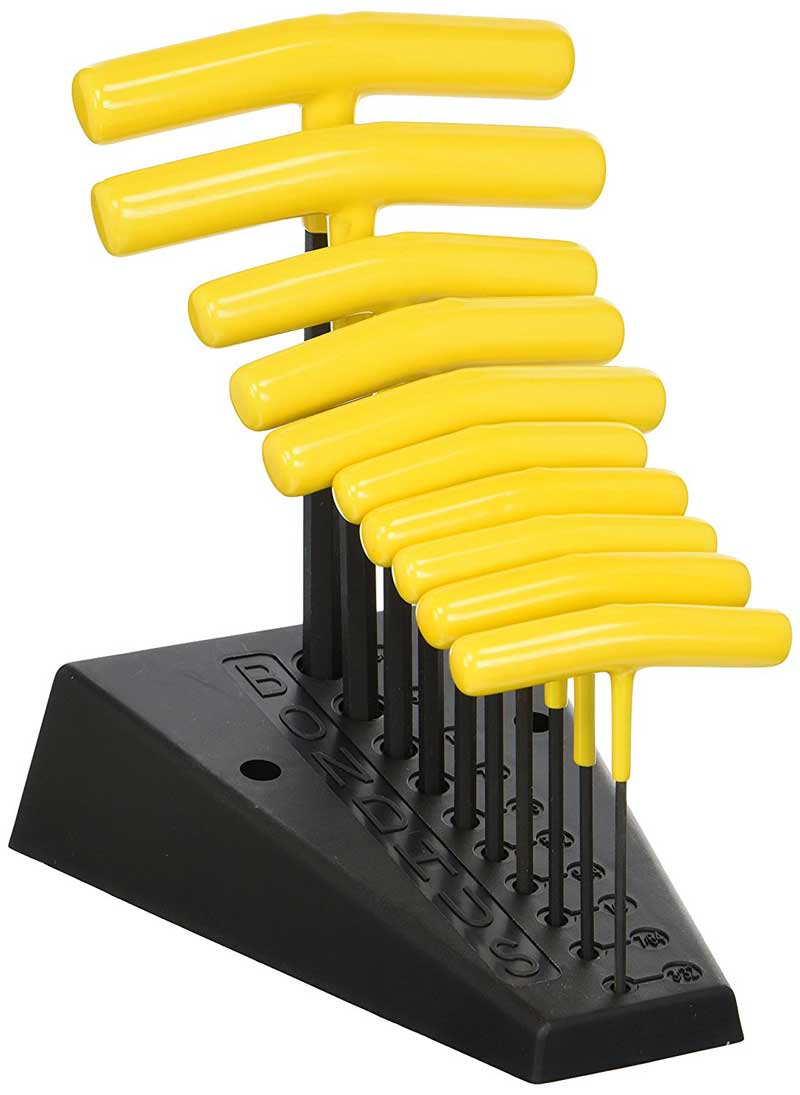 Bondhus 13390, Set 10 Graduated Length Hex T-Handles 3/32-3/8″ with Stand