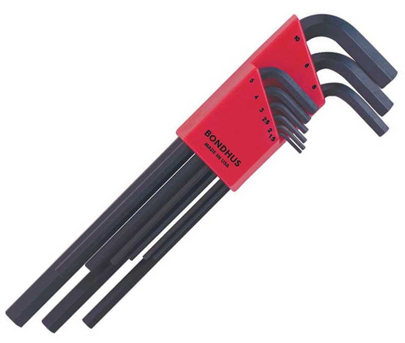 Bondhus 12199 Hex Tip Hex Key L-Wrench Set of 9pcs with ProGuard Finish. Long Arm. Packaged in Bondhex Color Coded Case.